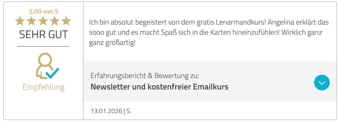Viele E-Mails enthalten auch Links zu vertiefenden Beiträgen, Videos, Audios, Bücher oder Kartendecks – mal kostenfrei, mal mit dem Hinweis auf weiterführende Angebote von mir, wenn du tiefer eintauchen möchtest.