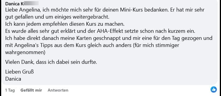 Dann ist jetzt der perfekte Moment, den nächsten Schritt mit deiner inneren Kartenlegerin zu gehen.